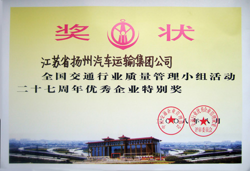 > 全國交通行業質量管理小組活動二十七周年優秀企業特別獎獎狀