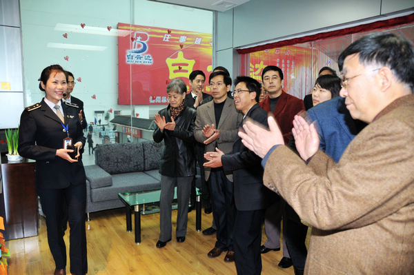12月1日上午,參會代表參觀了揚州汽車站,優質的服務、高效的管理以及不同班組各具特色的班組文化給參會代表留下了深刻的印象,代表們對車站的站務管理以及班組文化建設給予了充分的肯定。集團公司總經理時雨、黨委書記、副總經理吳忠俊、工會主席王曉鳴等陪同參觀。
