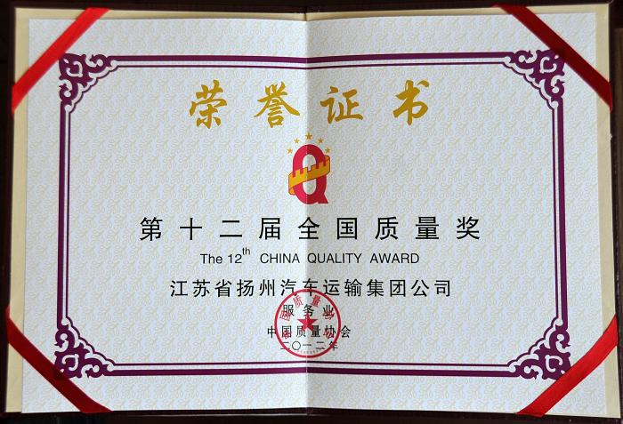 昨天上午,第十二屆全國追求卓越大會在北京京西賓館舉行。會上,集團公司榮獲質量經營管理最高榮譽——“全國質量獎”,全國僅6家單位獲此殊榮,也是全國交通客運行業首家獲獎單位。全國政協副主席張榕明、交通運輸部副部長高宏峰、中國質量協會會長賈福興為我司頒獎。